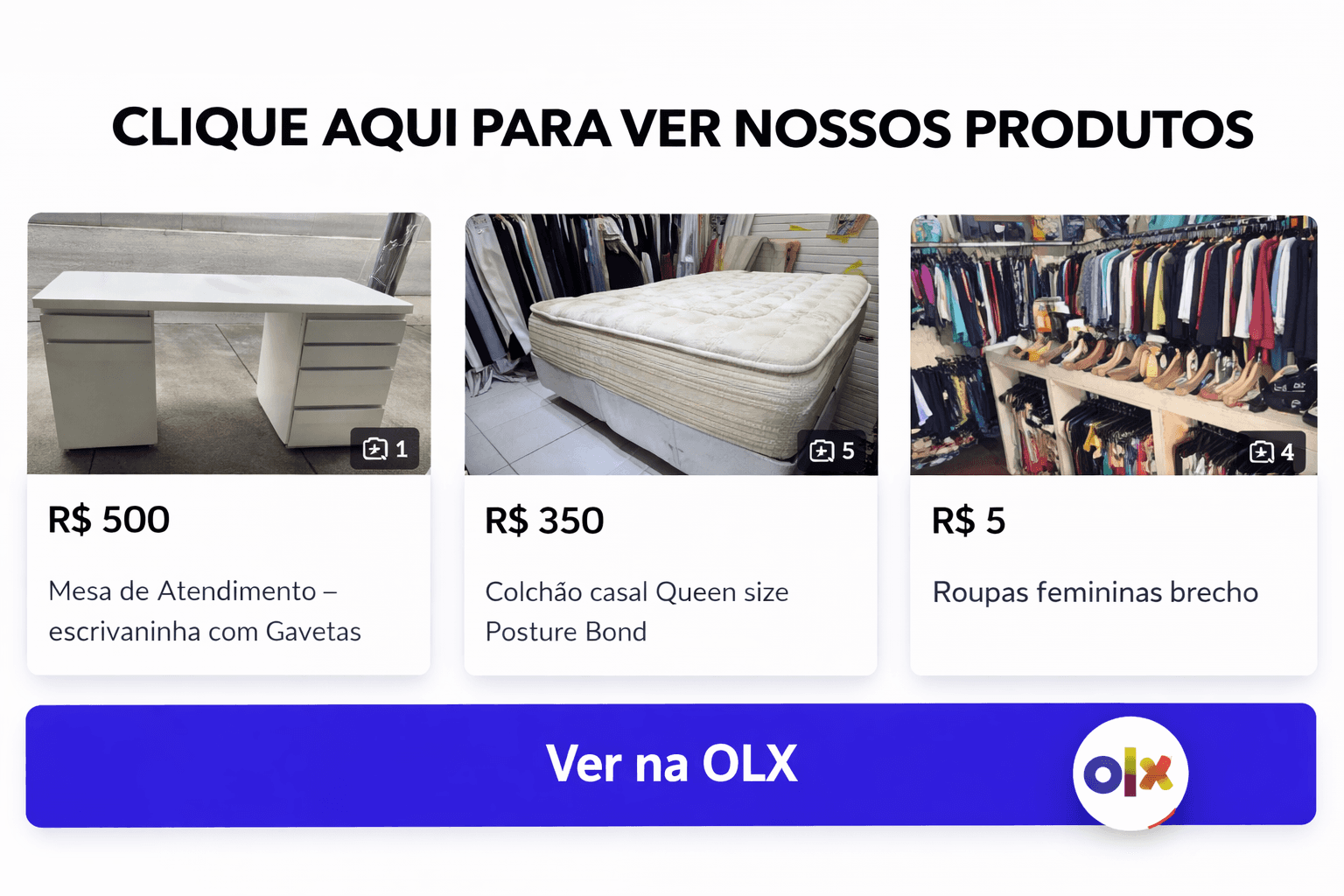 Aceitamos roupas, calçados, brinquedos, acessórios, itens de cama, mesa e banho como toalhas lençóis, enfeites, panelas, louças e também móveis, eletrônicos e eletrodomésticos.